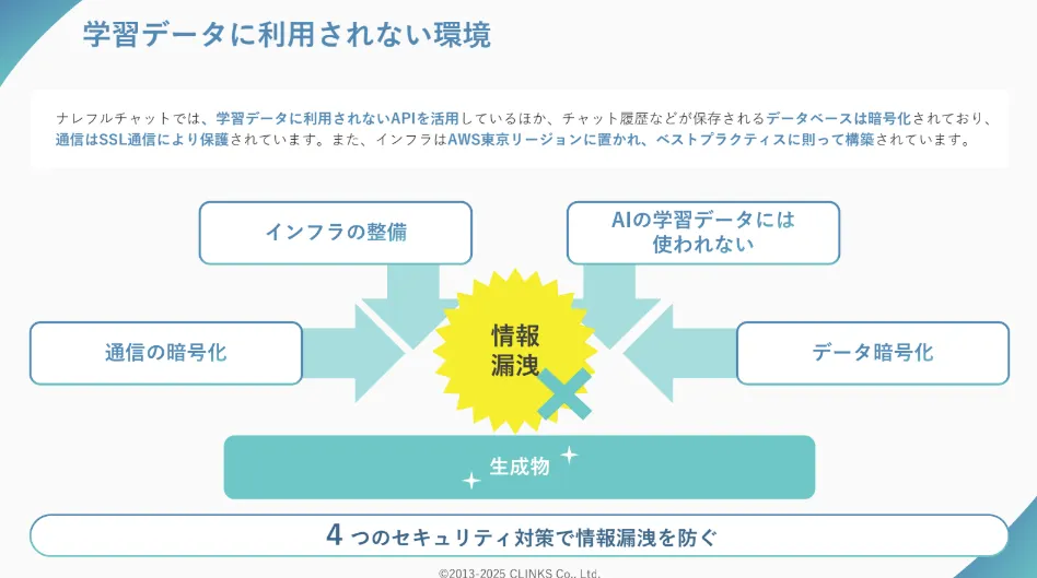 ナレフルチャットなら情報漏洩リスクを抑えて生成AIを活用できる