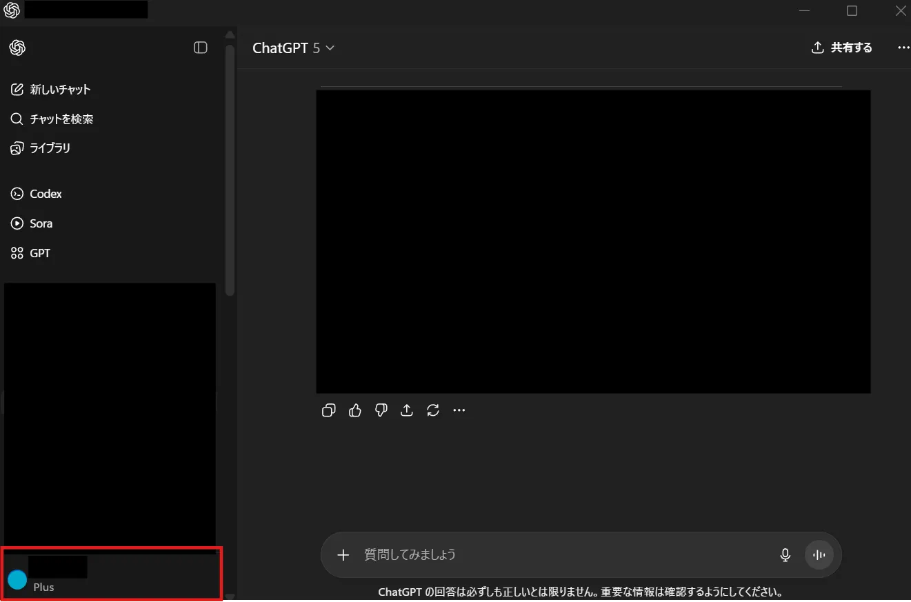 1.ChatGPTにログイン後、自分のアカウント名を選択