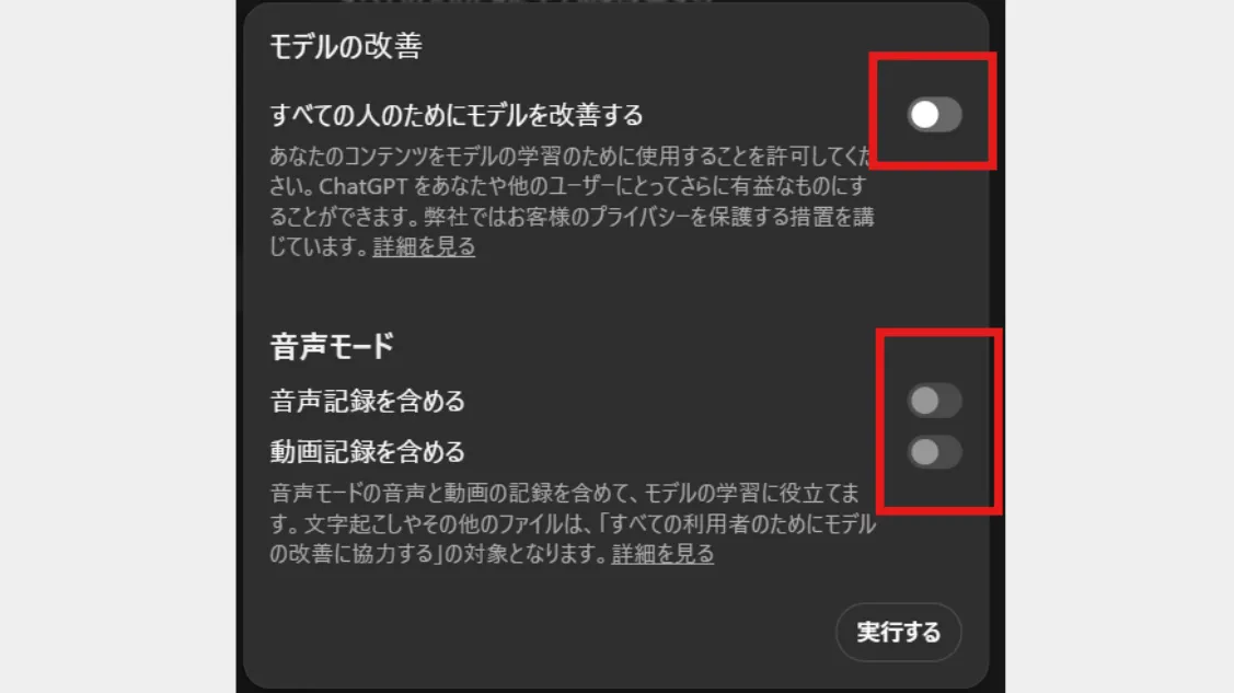 ChatGPTの設定で、入力内容が学習データに使用されることを防げます。この設定により、企業の機密情報が、意図せず他のユーザーの回答に含まれるリスクを大幅に軽減できます。