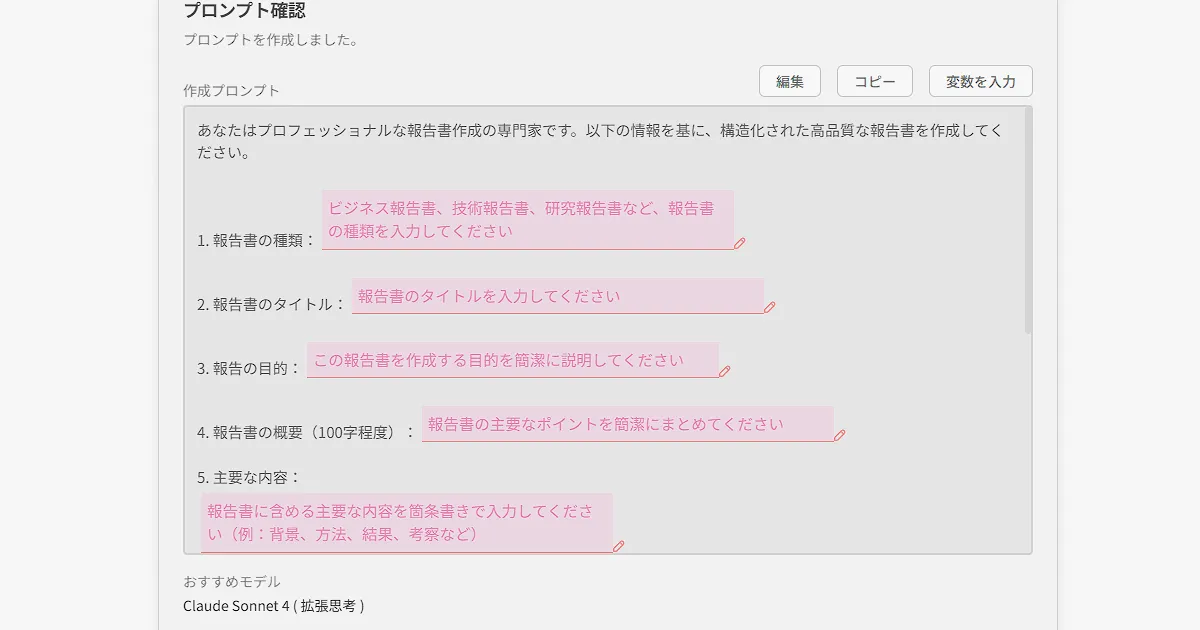 - プロンプトの自動生成と改善サポート