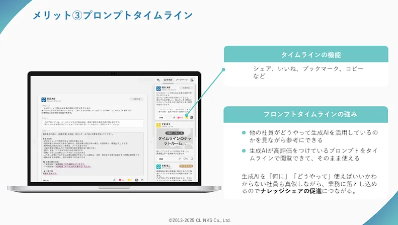 - プロンプトタイムラインによる社内ナレッジシェア