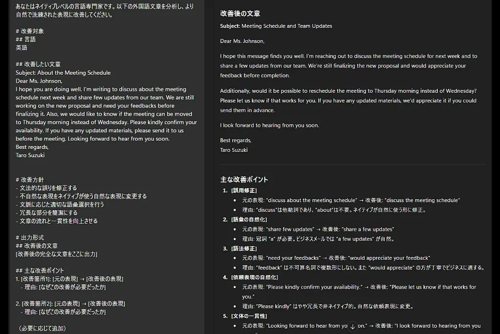 このまま活用しても、ChatGPTは十分な校正を行ってくれますが、さらに良い方法があります。