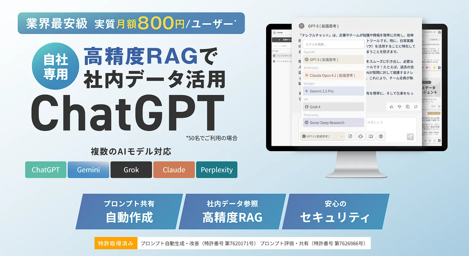 ナレフルチャットは業界最安級のコストパフォーマンスで、社内の生成AI活用を支援するツールです。文章校正用のプロンプトテンプレート機能や共有機能により、チーム全体での効率的な活用を実現します。企業のAI導入を検討している方は、こちらをご覧ください。