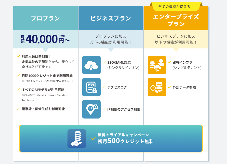 参考記事:ChatGPT Enterpriseとは?他プランとの違い・導入時の注意点を解説