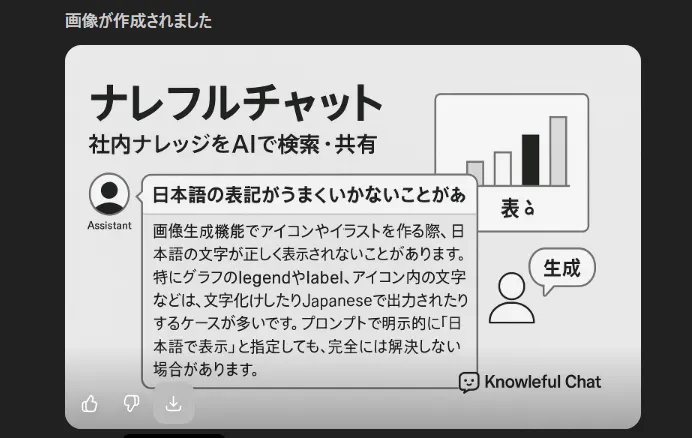画像生成機能でアイコンやイラストを作る際、日本語の文字が正しく表示されないことがあります。特にグラフの凡例やラベル、アイコン内の文字などは、文字化けしたり英語で出力されたりするケースが多いです。
