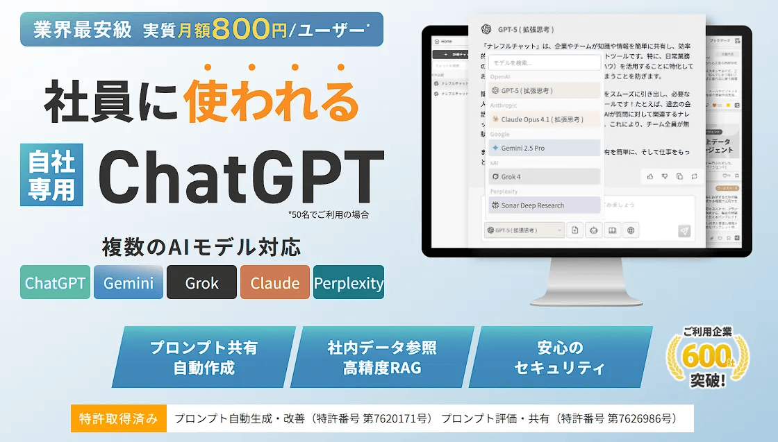 法人向けのセキュアな環境も整っており、安心して業務に生成AIを活用したい企業に最適です。