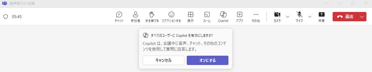 - 「すべてのユーザにCopilotを有効にしますか?」から「オンにする」を選択