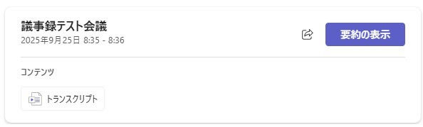 - 会議後にトランスクリプトのカードが表示される