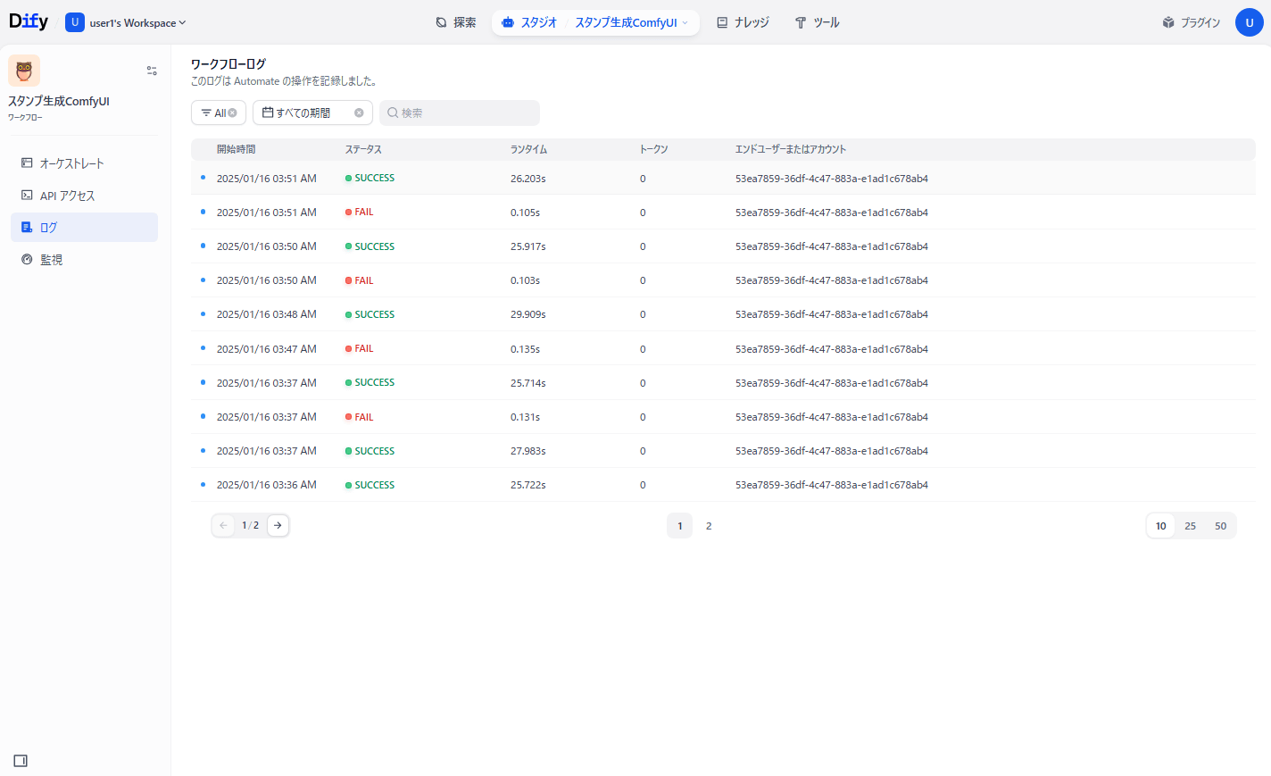ノードを繋いで処理フローを視覚的に設計できる機能です。