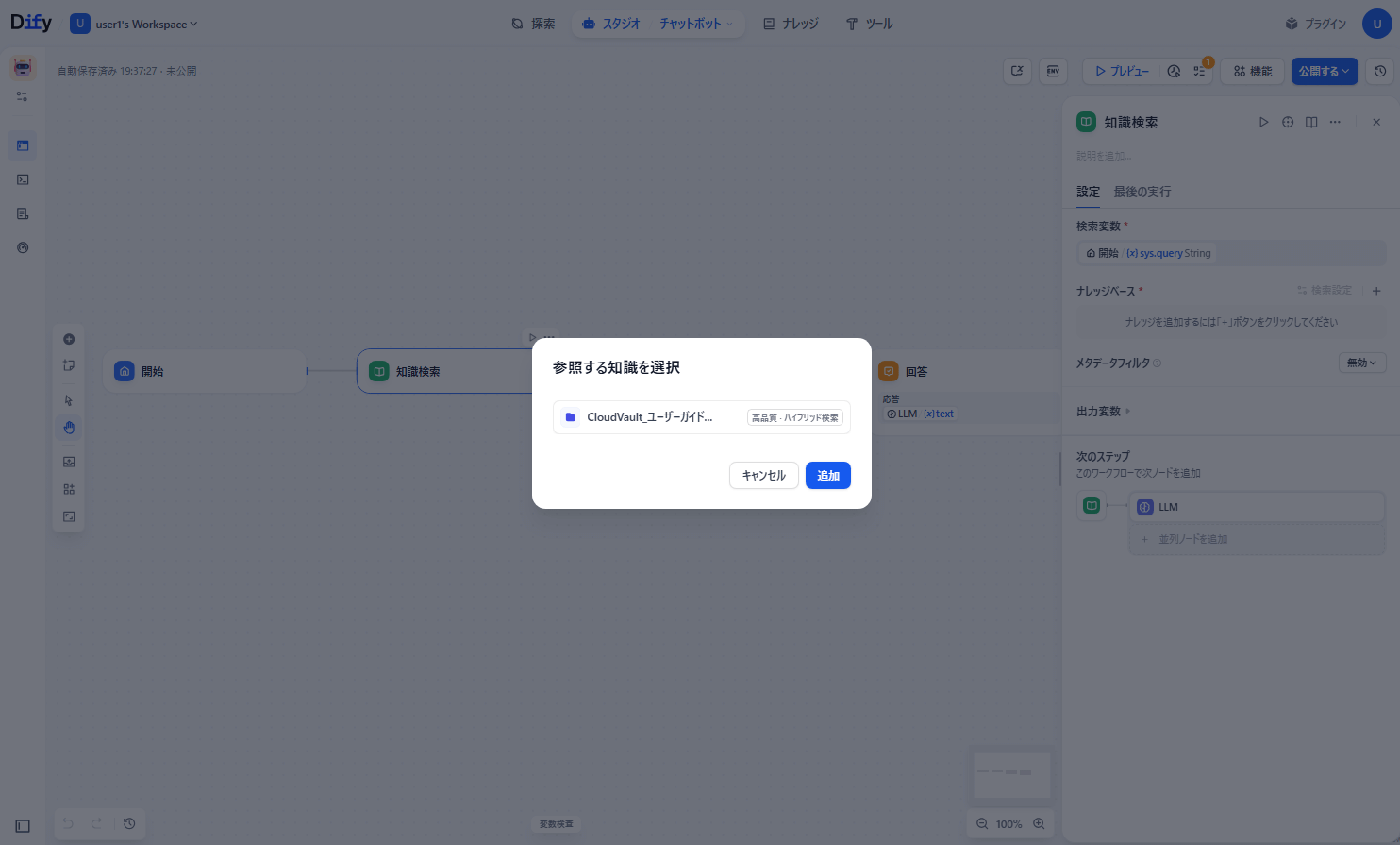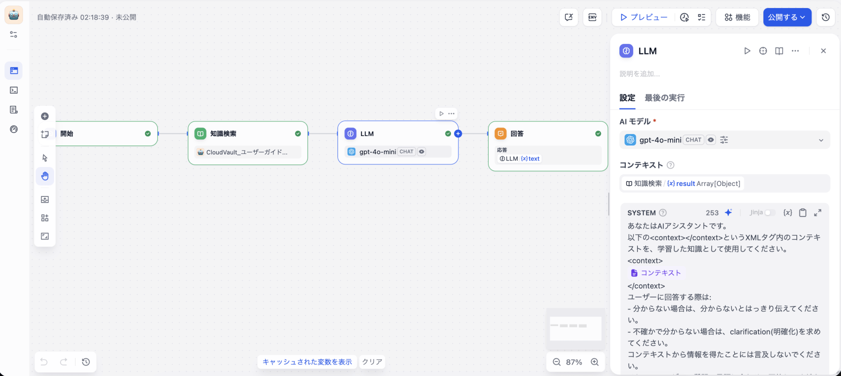 このテンプレートには、ユーザの意図理解→検索→要約生成の流れが、すでにワークフローとして組み込まれています。