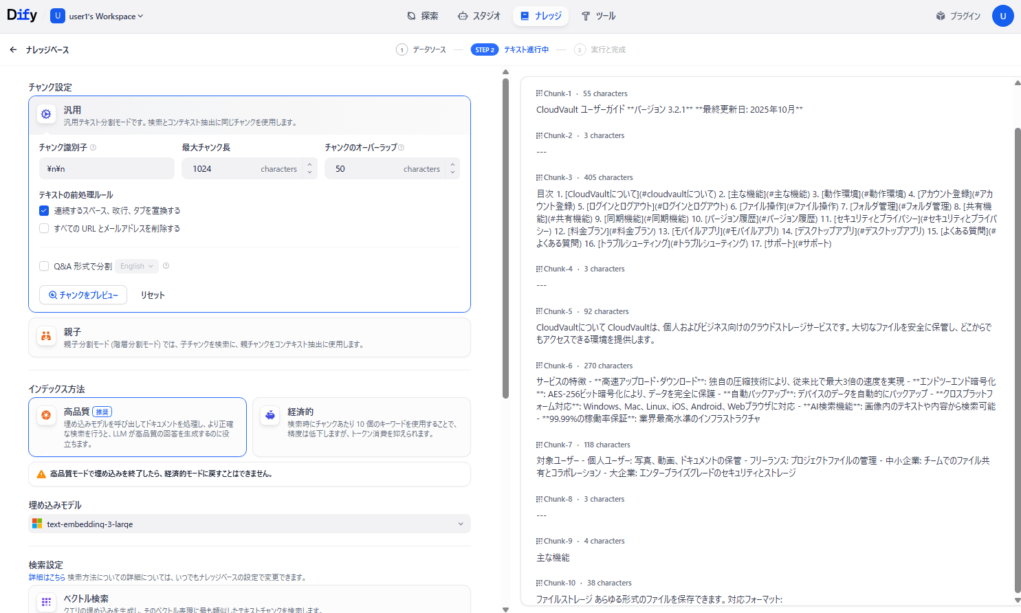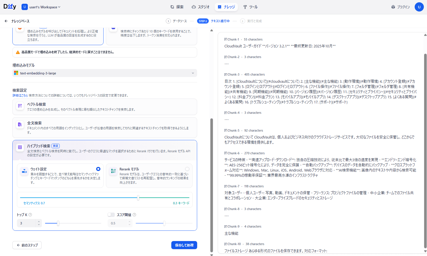 Difyでは、テキストファイル、PDF、Wordファイル、Webページなど、様々な形式のデータを簡単に取り込めます。また、ベクトルデータベースとの連携により、膨大なデータの中から関連性の高い情報を高速に検索できます。
