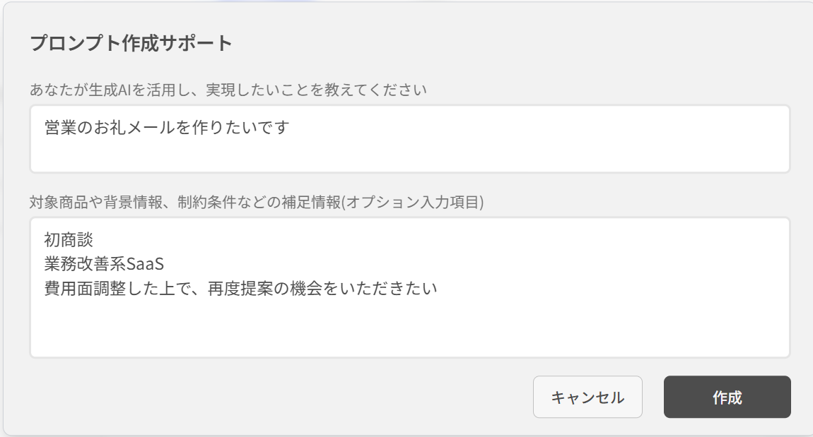営業担当者は複雑なプロンプト作成技術を学ぶ必要がなく、やりたいことを日本語で伝えるだけで効果的なAI活用を実現できるのです。